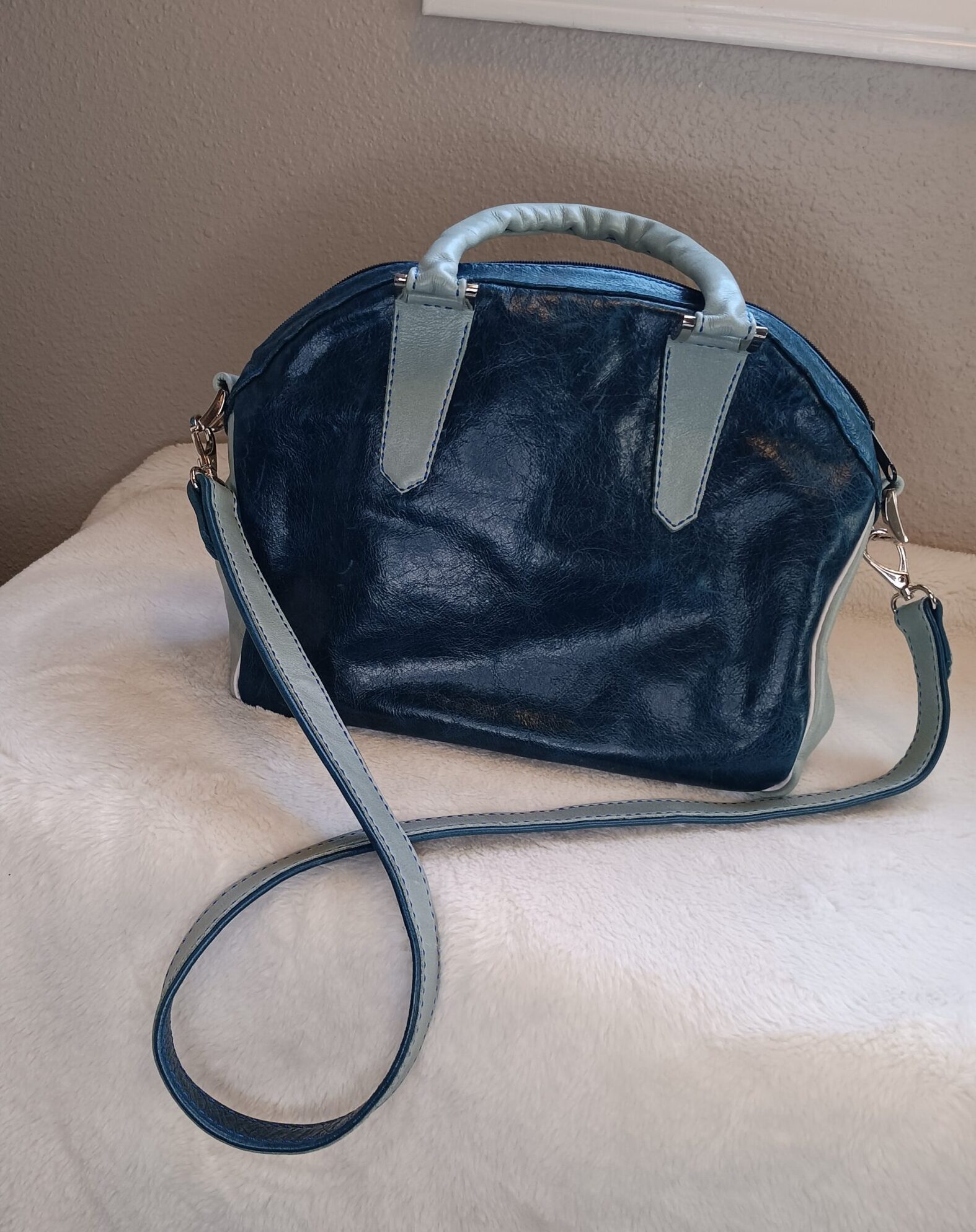 The Handcrafted Genuine Leather Satchel Bag in Navy Blue with Sky Blue Contrast is designed for timeless style and everyday functionality. Crafted from premium genuine leather, this satchel features a deep navy blue base complemented by sky blue contrast detailing for a refined, modern finish.