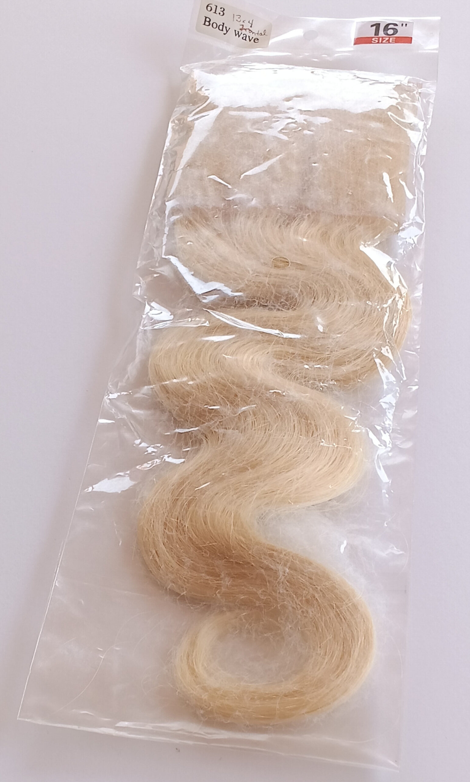 Transform your hairstyle with our 613 Blonde Body Wave 16 Inch Closure paired with a 13×4 Transparent Mesh Frontal, crafted from 100% virgin human hair for a soft, silky, and natural finish. This premium set is perfect for achieving a seamless hairline, full-bodied volume, and luxurious blonde look.